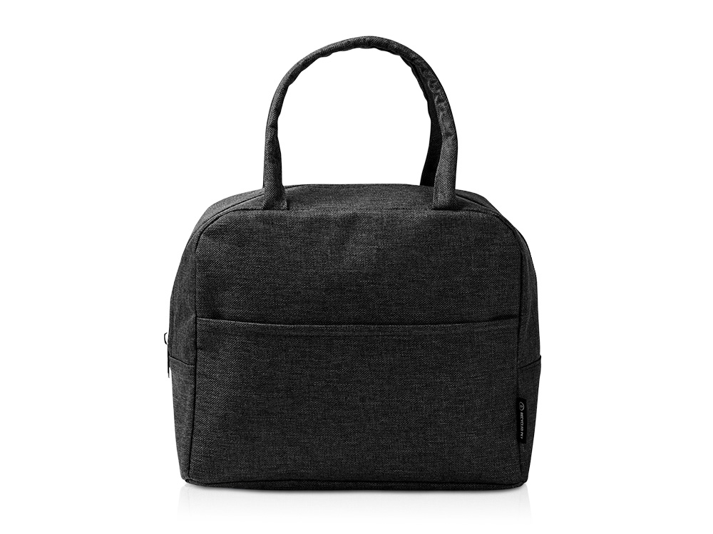 Термосумка из переработанного ПЭТ плотностью 600D с изотермической внутренней поверхностью. Передний карман и мягкие круглые ручки.