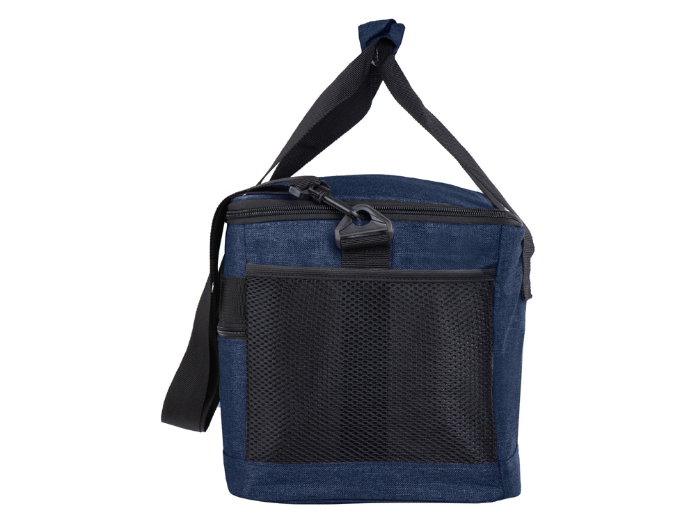 Вместительная сумка-холодильник со специальной конструкцией дна, предотвращающей протекание наружу жидкости от размораживания. Поверхность сумки всегда остается сухой. Основное отделение и карман спереди на молнии. Сбоку 2 сетчатых кармана. Съемный плечевой ремень регулируется по длине. Короткие ручки фиксируются вместе застежкой-липучкой. В комплекте открывалка для бутылок.