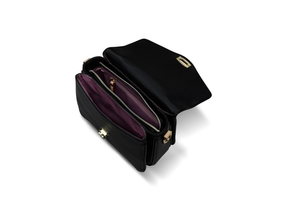 СУМКА ELLA Стильные сумки и кошельки из нашей коллекции ELLA украсят любой ваш образ. В изделиях этой серии элегантная эстетика гармонично сочетается с современным городским дизайном. Красивые изогнутые ручки, двухцветные плечевые ремни и изысканная фурнитура подчёркивают уникальный стиль коллекции. Модели произведены из прочного износостойкого полиуретана, что гарантирует их чрезвычайно долгий срок службы. СВОЙСТВА Внутренняя организация: основное отделение с 2 отсеками на молнии, карманом, 2 боковых кармана Внешняя организация: застёжка-клапан, задний карман на молнии, съёмный регулируемый ремень (до 130 см) Размер: 29 x 10 x 22 см Вес: 0,65 кг Материал: полиуретан