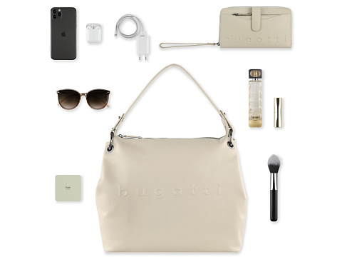 НАПЛЕЧНАЯ СУМКА DAPHNE Лаконичный дизайн коллекции DAPHNE станет идеальным украшением женского образа. Все модели серии изготовлены из высококачественной гладкой воловьей кожи и представлены в черном, коньячном и бежевом цветах. Благодаря классической цветовой палитре все изделия можно комбинировать друг с другом для идеального сочетания. Акцентное тиснение логотипа bugatti выполнено вручную с максимальной филигранностью. Оригинальные плетеные ручки и металлические детали придают очарование коллекции, создают элегантный и одновременно спортивный образ. СВОЙСТВА Внутренняя организация: основное отделение на молнии с 2 открытыми карманами, отделение на молнии, карман на молнии. Внешняя организация: заднее отделение на молнии, съемная регулируемая ручка (от 46 до 50 см). Размер (длина, глубина и высота): 34 х 13 х 30 см Вес: 0,61 кг
