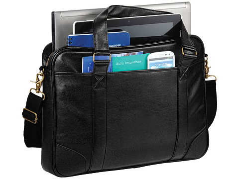 Коллекция сумок Oxford - громкая инвестиция. Сумка с основным отделением на молнии, в которое поместится большинство ноутбуков диагональю до 15,6. Кроме того вы можете поместить в сумку папки, книги и документы. Внутренние кармашки органайзеры для iPad, Surface или других девайсов или бизнес аксессуаров. Кармашек на липучке. Отстегивающийся ремень на плечо, ручки и стропа для крепления к чемодану. Фурнирура под бронзу в античном стиле. Винил.