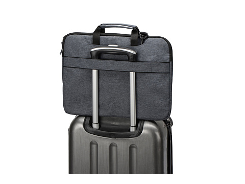 Элегантная сумка для ноутбука 15.6’’. Мягкая прочная велюровая подкладка и утолщенные стенки создают надежную защиту ноутбука от случайных ударов и царапин. Возможность убрать ручки в карманы превращает сумку в чехол для ноутбука или папку для документов. · 2 вместительных внешних кармана под ручками, · 1 карман на молнии на лицевой стороне с органайзером внутри, · отстегивающийся регулируемый ремень на плечо, · ремень для фиксации на чемодане.