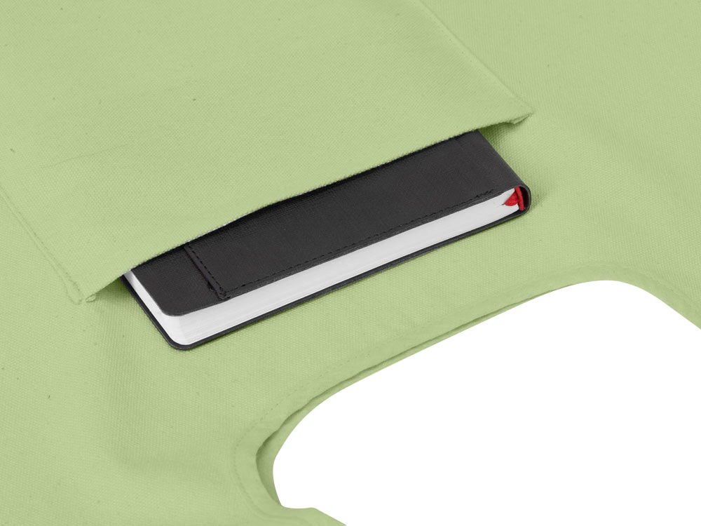 Вместительная сумка-шоппер из очень плотного переработанного хлопка с широкими лямками и большим наружным карманом 20 x 25 см спереди.