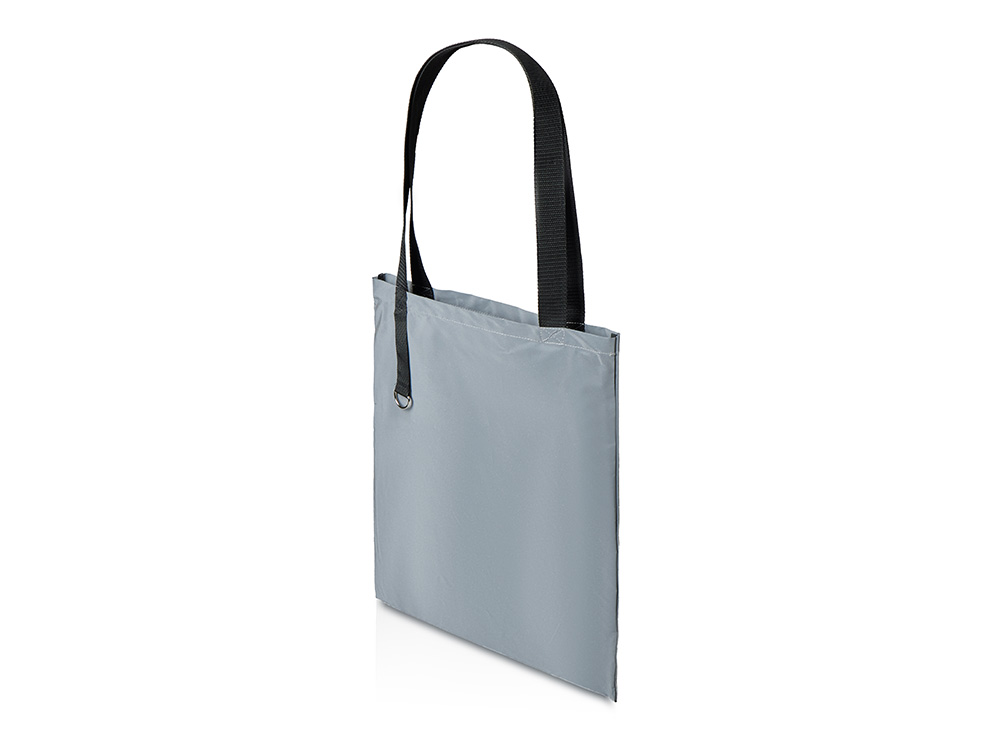 Сумка для покупок из светоотражающей ткани обеспечивает дополнительную защиту в темное время суток. Прочные ручки длиной 68 см. Металлическое д-кольцо на хлястике предусмотрено для крепления ремувок с вашим логотипом.