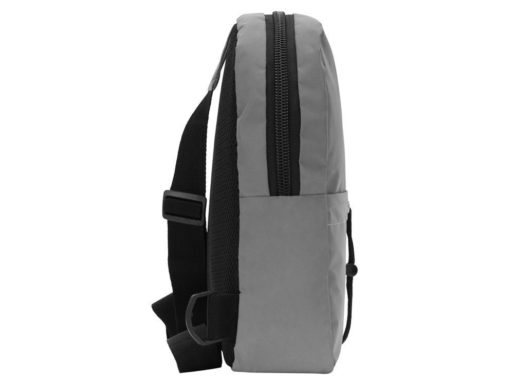 Светоотражающая сумка на одно плечо обеспечит дополнительную безопасность в темное время суток. Внутренний карман на молнии предназначен для хранения ценных вещей. Задняя часть сумки, прилегающая к телу, снабжена дышащей сеткой. Ремень 120 см регулируется по длине.Благодаря возможности менять положение ремня, сумку можно носить слева и справа.