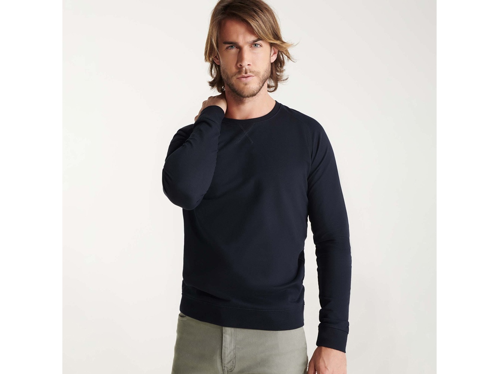 Свитшот с рукавом реглан из хлопкового футера без начеса. Манжеты по рукавами низу изделия из риба 1х1. Круглый вырез горловины дополнительно усилен тесьмой. В ассортименте представлена аналогичная женская модель Annapurna