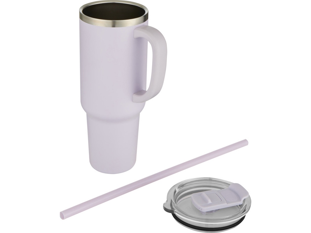 Кружка с двойными стенками из меди, сертифицированной RCS, и вакуумной изоляцией, изготовлена из нержавеющей стали, 91% которой подверглось вторичной переработке, сохраняет напитки холодными в течение как минимум 24 часов. Имеет соломинку Tritan и функцию слайдера крышки для предотвращения проливания. Прижимная поворотная крышка из 100% переработанного пластика надежно удерживает соломинку на месте и может легко поворачиваться, открывая отверстие для напитка. Прочное внешнее порошковое покрытие. Объем: 1200 мл. Только ручная мойка. Recycled stainless steel.