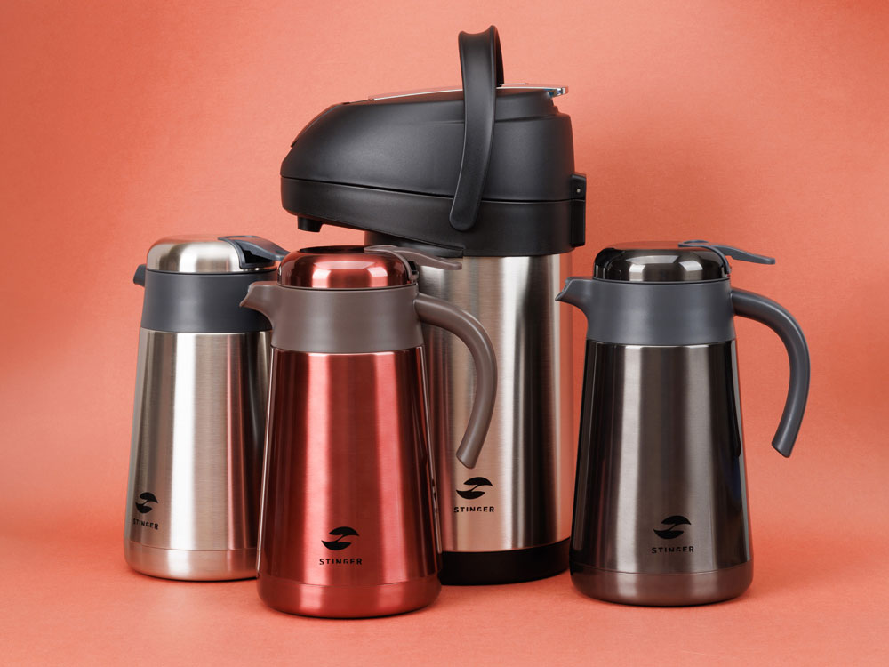 Термокофейник Stinger, 1,6 л, нержавеющая сталь, красный, 18 x 13,6 x 25,9 см купить оптом и в розницу с нанесением логотипа в Москве