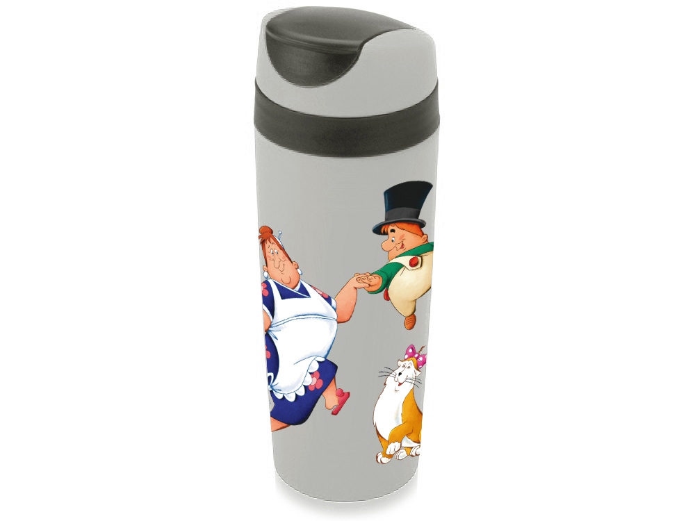 Термокружка пластиковая 450 мл Карлсон, серый купить оптом и в розницу с нанесением логотипа в Москве