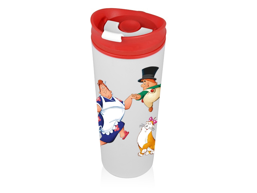 Термокружка пластиковая, двухцветная 500 мл Карлсон, белый/красный купить оптом и в розницу с нанесением логотипа в Москве