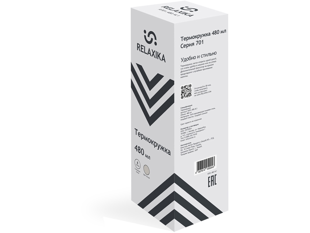 Термокружка Relaxika 701 (0,48 литра), белая (без лого)