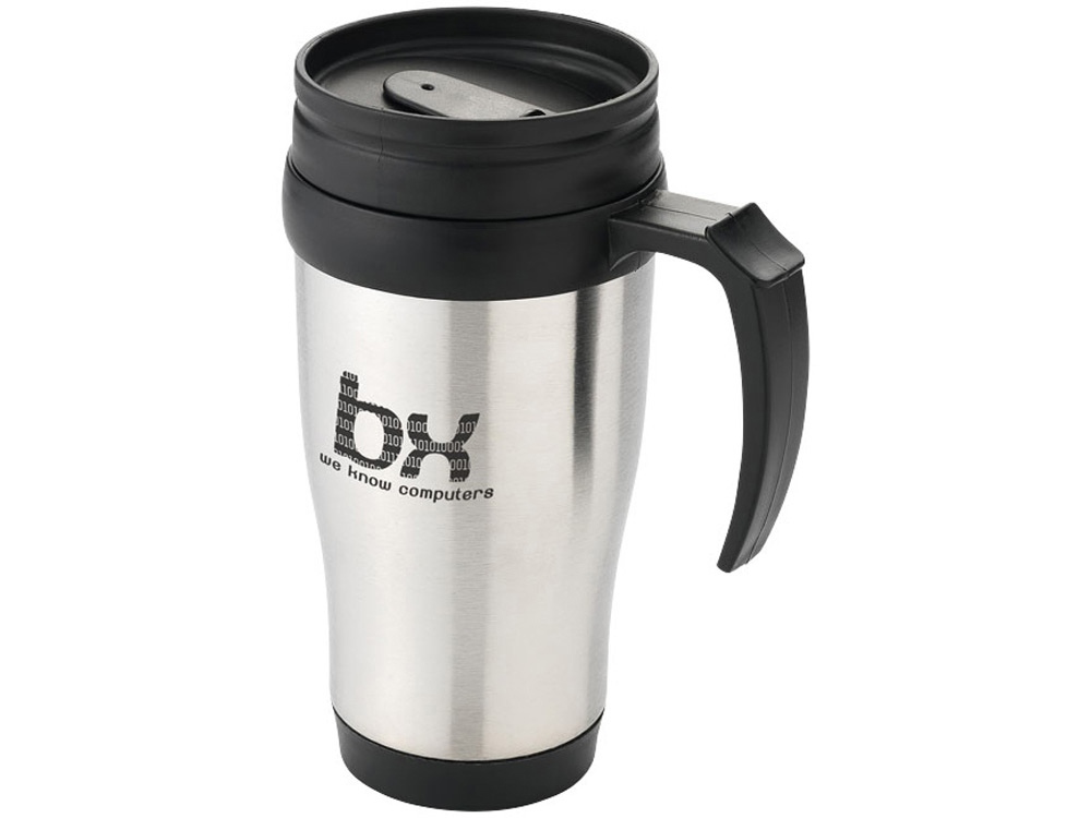 Термокружка Sanibel. Кружка с двойными стенками со съемной крышкой и открывающимся отверстием для питья. Объем – 330 мл. Наружная поверхность из нержавеющей стали, внутренняя поверхность из пластика. Без БФА.
