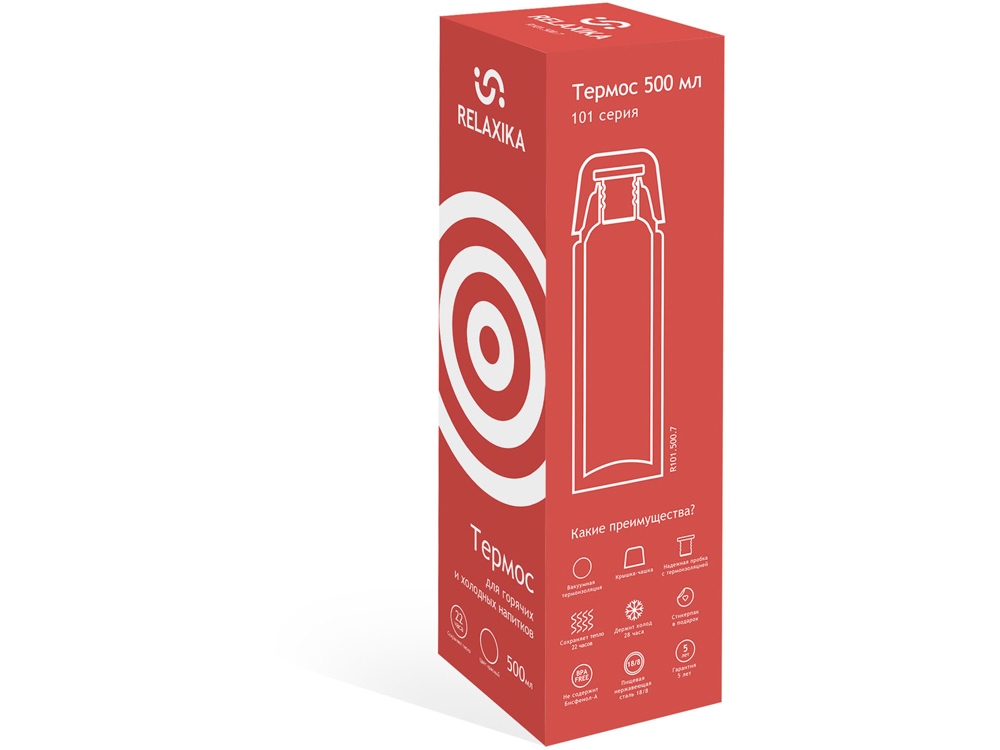 Термос Relaxika 101 (0,5 литра), красный (без лого) купить оптом и в розницу с нанесением логотипа в Москве