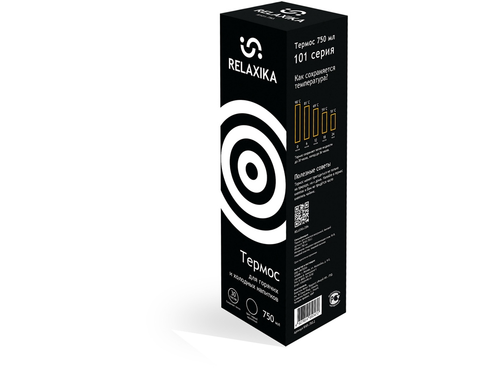 Классический термос Relaxika с высокими показателями удержания температуры напитка для походов, путешествий, спорта и ежедневного использования. Прочные двойные стенки из высококачественной нержавеющей стали 18/8 с вакуумной изоляцией гарантируют, что ваш напиток останется холодным в течение 36 часов и горячим до 30 часов. Этот материал не только прочен, но и гигиеничен, не выделяет никаких вредных для здоровья веществ. Ваши напитки сохраняет естественный вкус и не приобретут посторонний запах. Напиток остается холодным до 36 часов и горячим до 30 часов. - Узкое горлышко позволяет удерживать температуру максимально долго - Крышку термоса можно использовать как чашку BPA Free. В пластмассах, используемых для производства термосов, отсутствует Бисфенол А - Надежная закручивающаяся пробка с силиконовым кольцом защищает от протекания и помогает удерживать температура - Высококачественная нержавеющая сталь 18/8 Рекомендации по уходу Не рекомендуется использовать посудомоечные машины при мытье изделия. Мойте мягкими губками и жидкими моющими средствами. Не используйте сухие абразивные средства чтобы не поцарапать поверхность. После мытья необходимо протереть сухой салфеткой или полотенцем и оставить сушиться без крышки. Не для микроволновой печи или морозильной камеры. Чтобы предотвратить утечку, тщательно закройте верхнюю крышку.