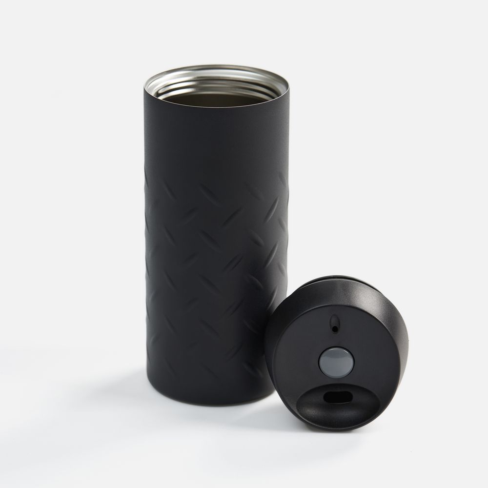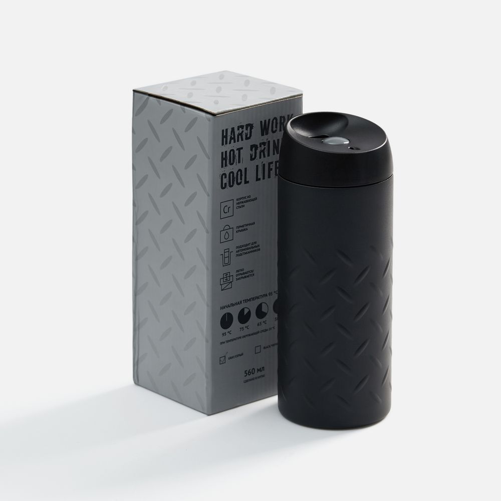 Термостакан Hard Work, черный купить оптом и в розницу с нанесением логотипа в Москве