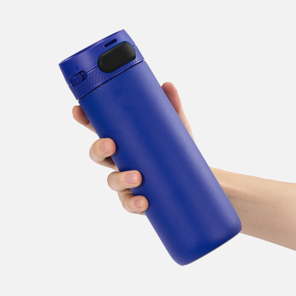 Термостакан X1 с цветной кнопкой, синий с черным