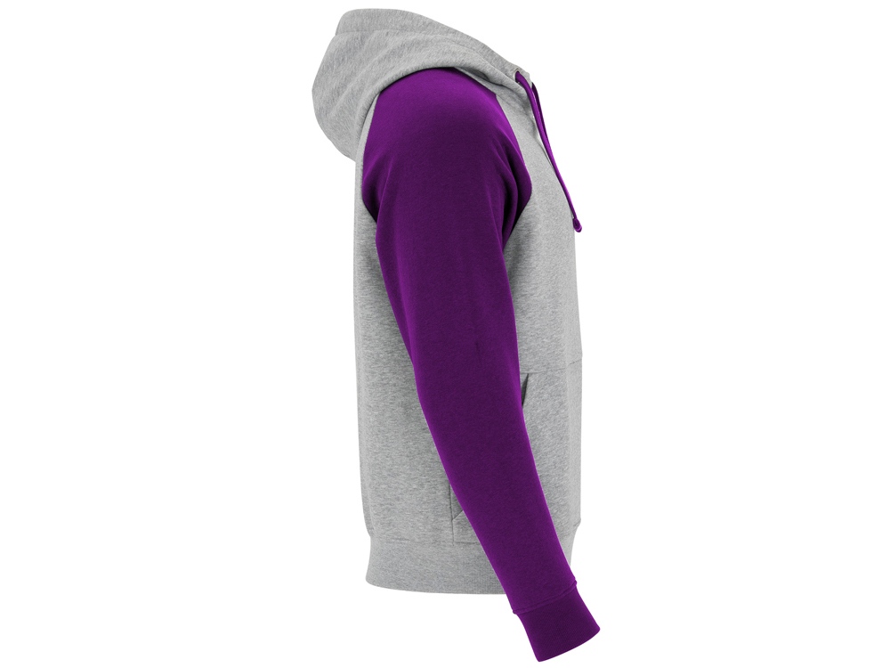 Худи с контрастным рукавом реглан. Капюшон с запахом, с контрастной подкладкой. На полочке карман кенгуру. Манжеты рукавов и низ изделия из риба 1х1. В ассортименте представлена аналогичная мужская модель Badet