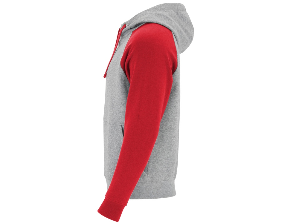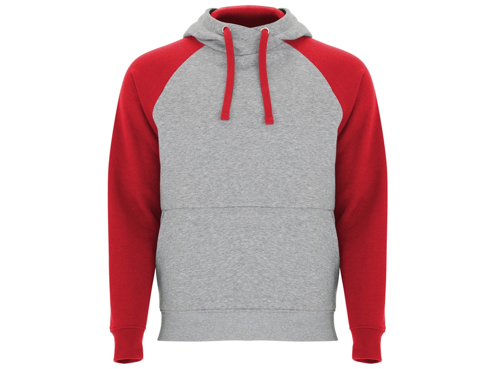 Худи с контрастным рукавом реглан. Капюшон с запахом, с контрастной подкладкой и шнурком. На полочке карман кенгуру. Манжеты рукавов и низ изделия из риба 1х1. В ассортименте представлена аналогичная детская модель Badet