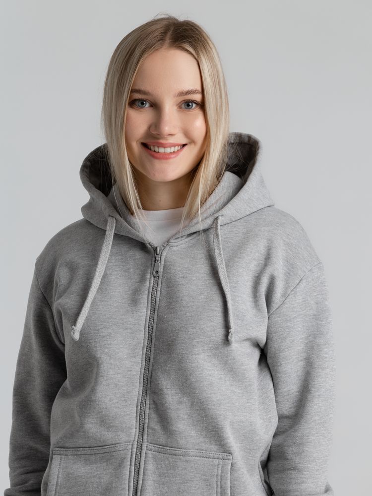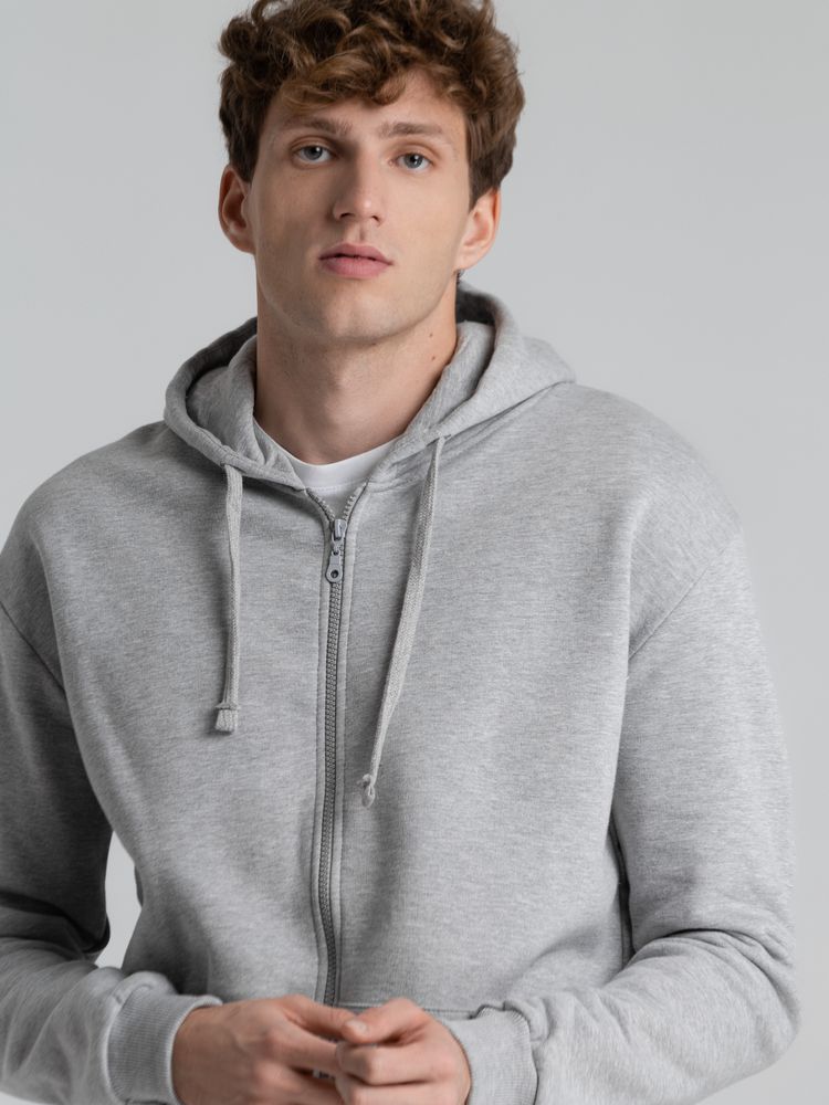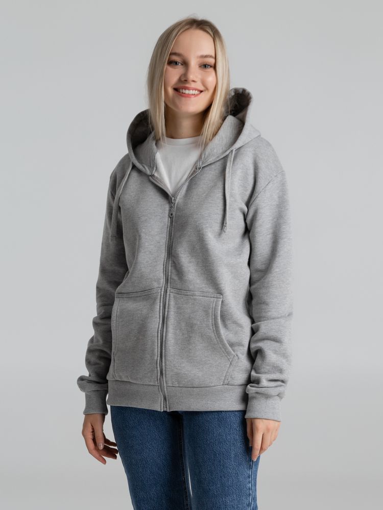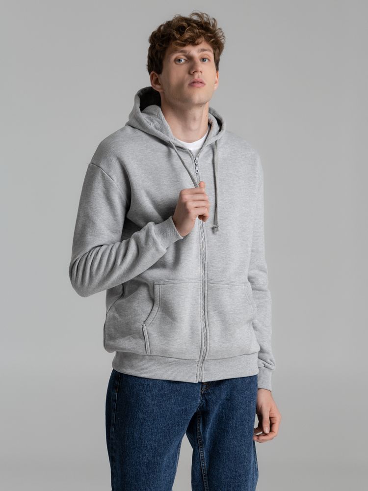 Толстовка на молнии с капюшоном Unit Siverga Heavy, серый меланж купить оптом и в розницу с нанесением логотипа в Москве