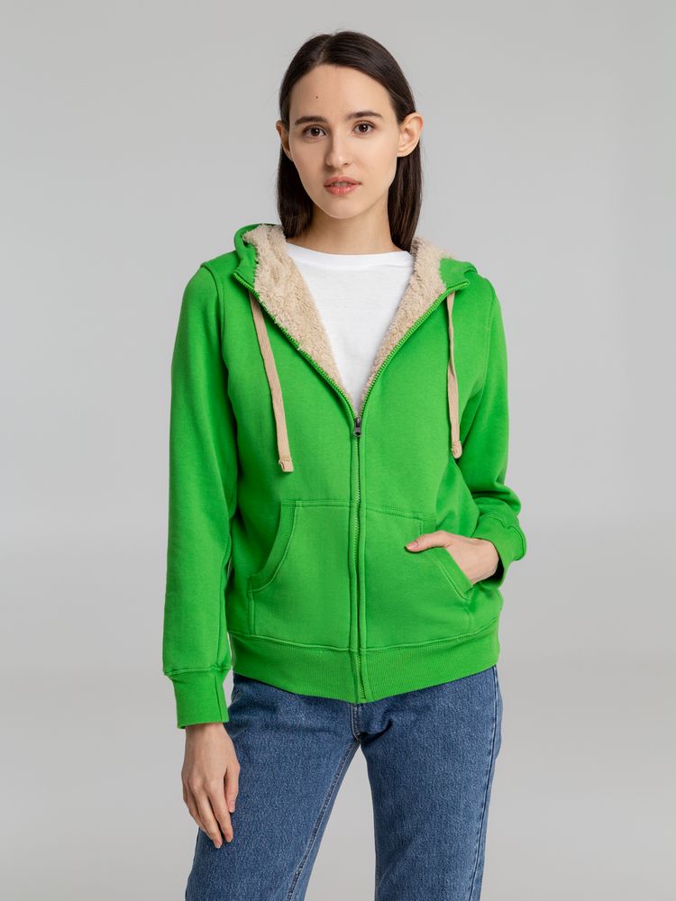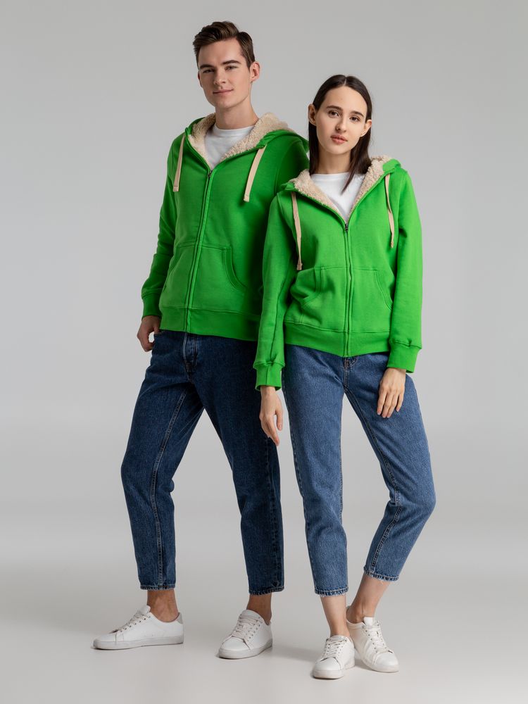 Толстовка унисекс на молнии Sherpa 280, ярко-зеленая купить оптом и в розницу с нанесением логотипа в Москве