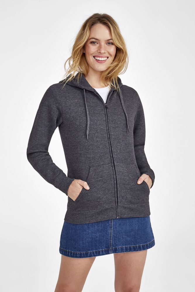 Толстовка женская на молнии с капюшоном Seven Women, темно-синяя купить оптом и в розницу с нанесением логотипа в Москве