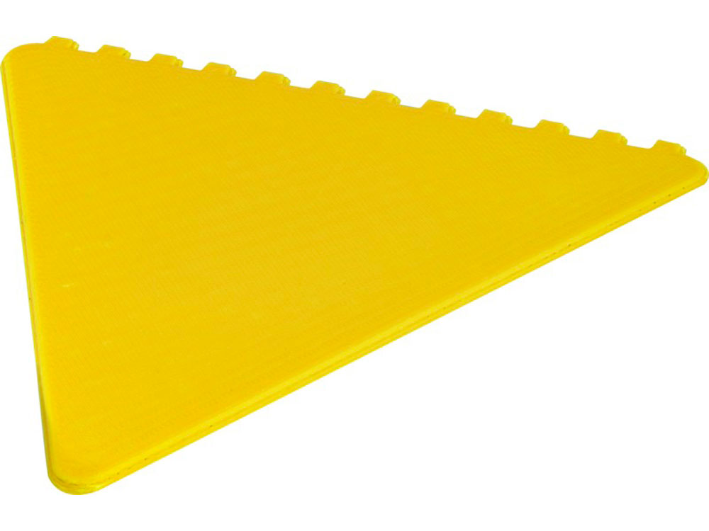 Треугольный скребок для удаления льда с лобового стекла, имеющий большую площадь для декорирования. Сделано в Великобритании из переработанного полистирольной пластмассы. Переработанный HIPS пластик.