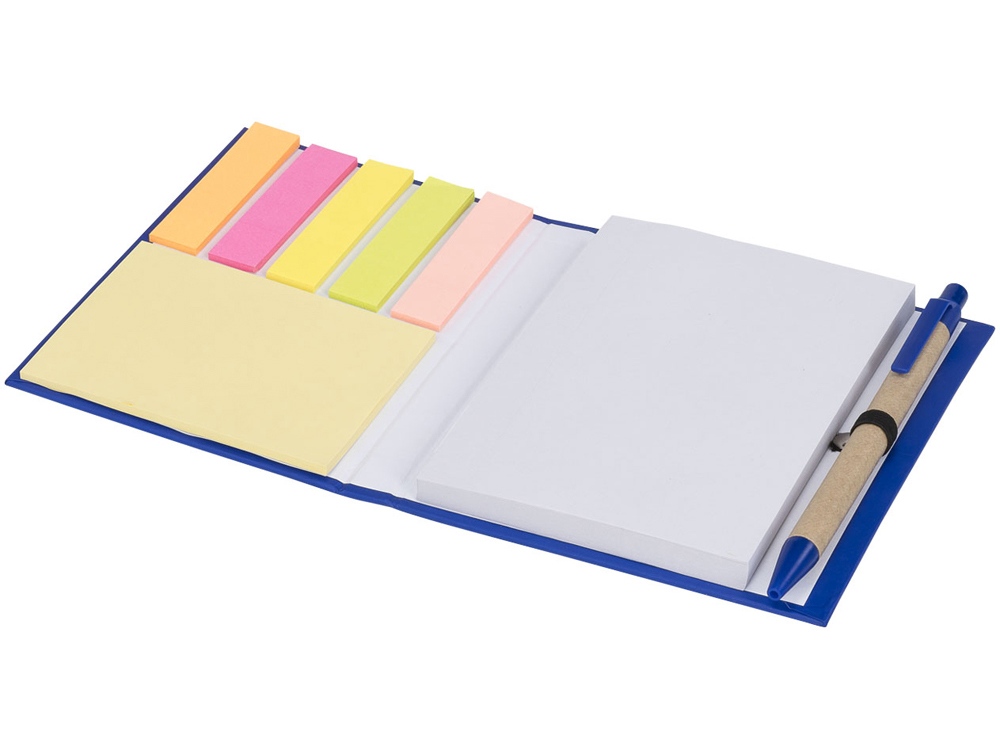 Цветной комбинированный блокнот с ручкой. Этот полезный набор для любого рабочего стола или рабочего места включает блокнот, ярлыки для страниц, клейкие листы и шариковую ручку. Идеально подходит для рабочего стола или использования в пути. Бумага.