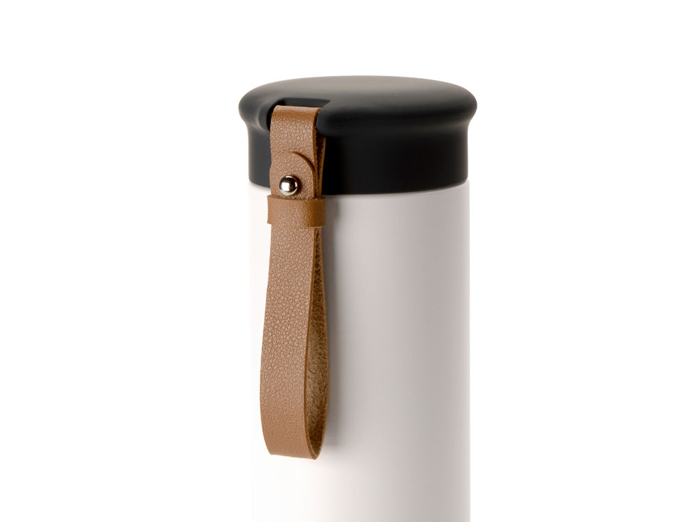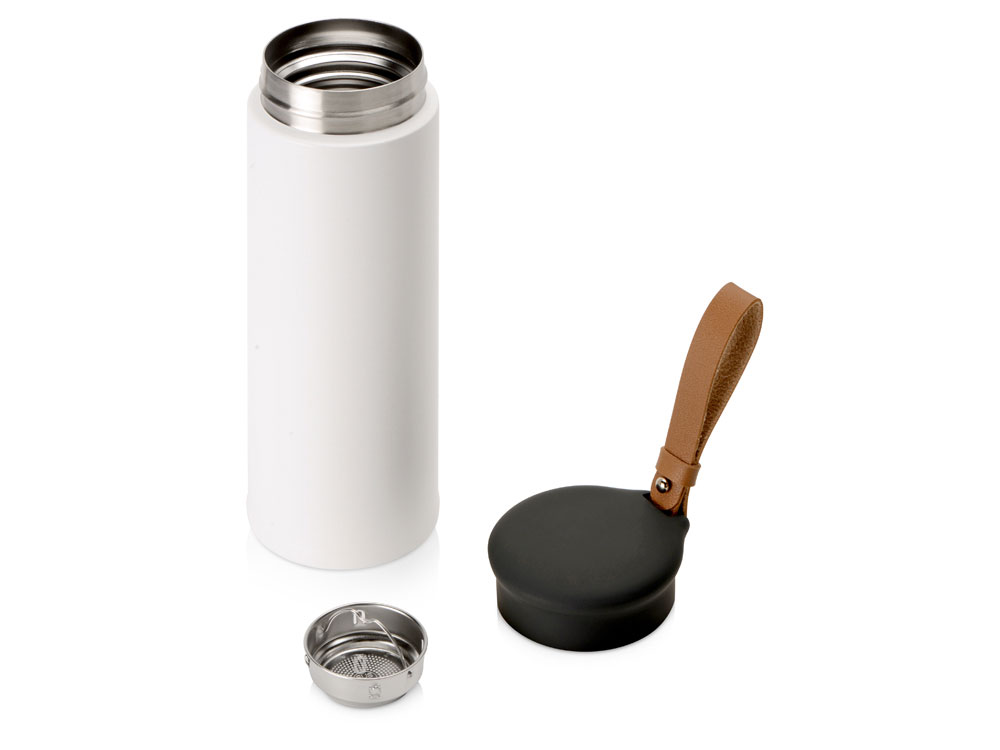 Engage — термос из долговечной нержавеющей стали с двойными стенками, вакуумная изоляция между которыми помогает сохранять температуру напитков в течение долгого времени. Термос идеально подходит для заваривания чая: специально для этого в комплекте идет металлическое ситечко с ручкой, которое не пропустит ни одной чаинки. Термос герметично завинчивается на крышку, оснащенную съемным ремешком из качественной ПУ кожи. Крышка имеет прорезиненное покрытие, что создает интересное сочетание текстур в рамках одной модели. Корпус имеет элегантную рельефную поверхность с антискользящим эффектом. - Удобный ремешок - Герметичная крышка soft-touch - Сохраняет тепло и холод до 18 часов - Пищевая долговечная сталь 304 марки - Оптимальный объем