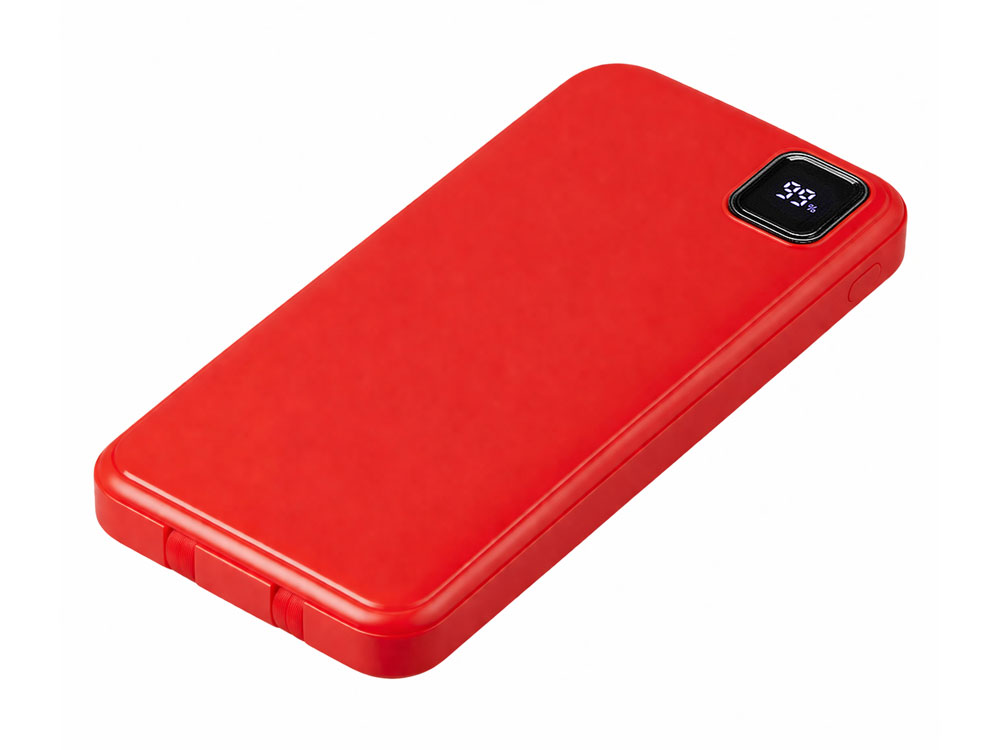 Удобный внешний аккумулятор с встроенными кабелями USB-C и Lightning — ваш надежный партнер в путешествиях, на встречах и в повседневных задачах. Цифровой дисплей в реальном времени показывает точный остаток заряда, а компактные габариты делают его таким же удобным, как смартфон. Прочный корпус из переработанного АБС-пластика и емкость 10000 мАч обеспечивают долгую работу даже при интенсивном использовании. Идеальный выбор для тех, кто ценит комфорт и функциональность в одном устройстве. Продуманная упаковка: для открытия просто потяните за язычок, и появится гаджет с нанесением. - Встроенные кабели USB-C и Lightning — больше не нужно искать провода - Цифровой дисплей с точным отображением заряда - Удобная зона под нанесение логотипа - Компактный размер, сопоставимый с телефоном — легко помещается в карман, сумку или портфель. - Упаковка с удобным и быстрым открытием
