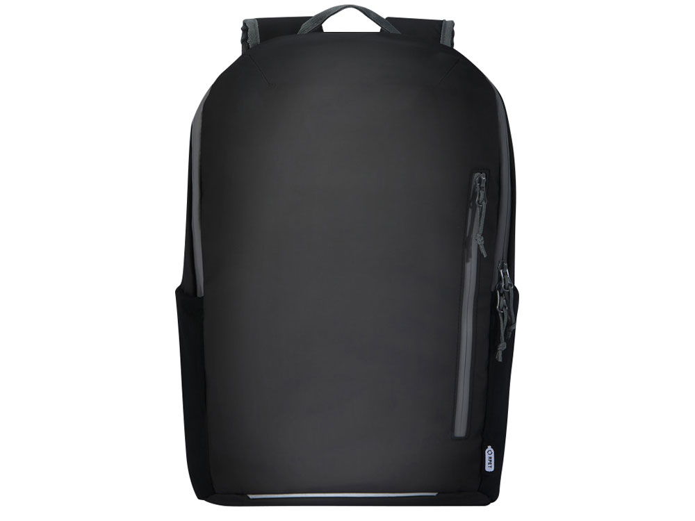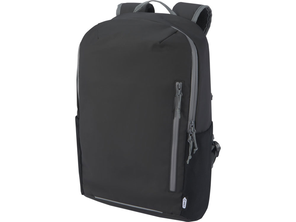Водонепроницаемый рюкзак для ноутбука, изготовленный из переработанных материалов, сертифицированных согласно стандарту GRS, включая застежки-молнии. Имеет отделение с подкладкой, в которое помещается ноутбук с диагональю 15 дюймов, боковое отверстие для быстрого доступа, несколько сетчатых карманов, передний карман на молнии, а также светоотражающую окантовку для видимости. Формованная мягкая спинка и регулируемый нагрудный ремень обеспечивают комфорт даже тогда, когда рюкзак полностью загружен. Из переработанных материалов, сертифицированных по стандарту GRS, изготовлены основная ткань, подкладка, лямки и застежки-молнии. Емкость: 21 литр. Не содержит ПВХ.