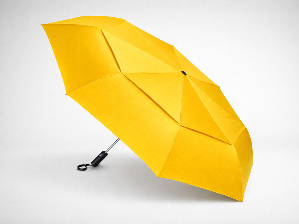 Купол этого складного зонта-автомата состоит из двух полотен и имеет большой диаметр 127 см. Прочный каркас и спицы из стекловолокна устоят при порывах ветра. Благодаря этому зонт служит надежным укрытием в самый сильный дождь. Закрывается в 3 сложения. Ручка обработана мягким покрытием soft-touch. Широкий хлястик для удобства персонализации.