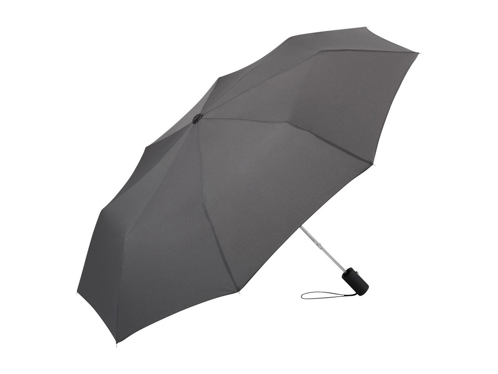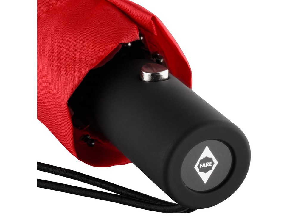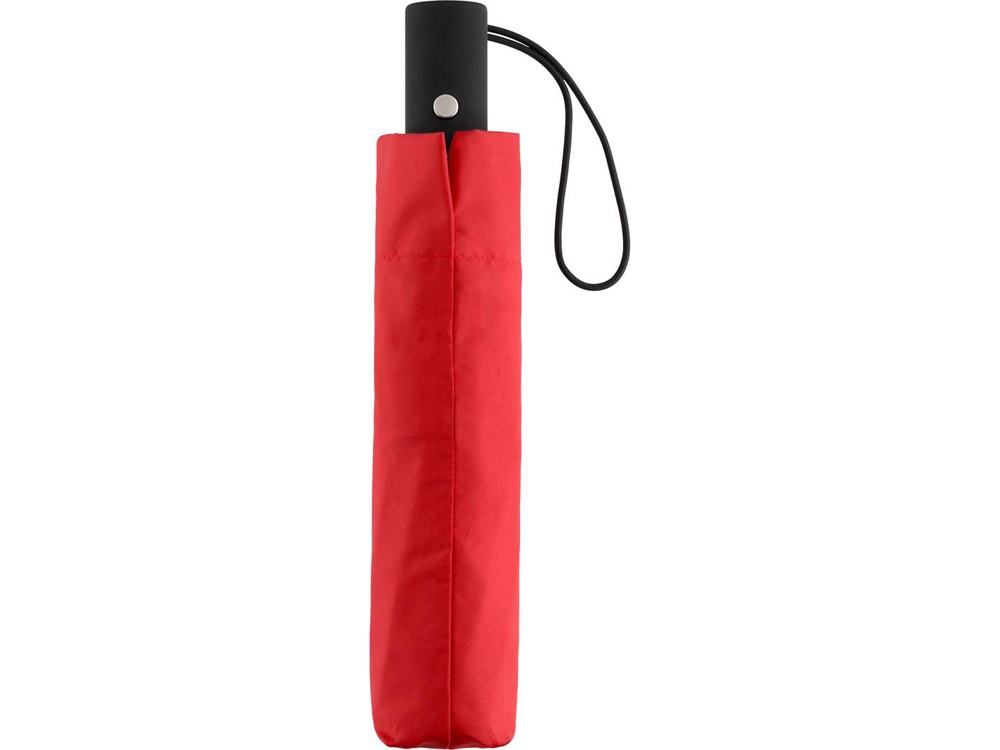 Полуавтоматический складной зонт открывается нажатием кнопки на ручке. Для большего удобства на ручку нанесено покрытие soft touch и добавлен эластичный шнурок.