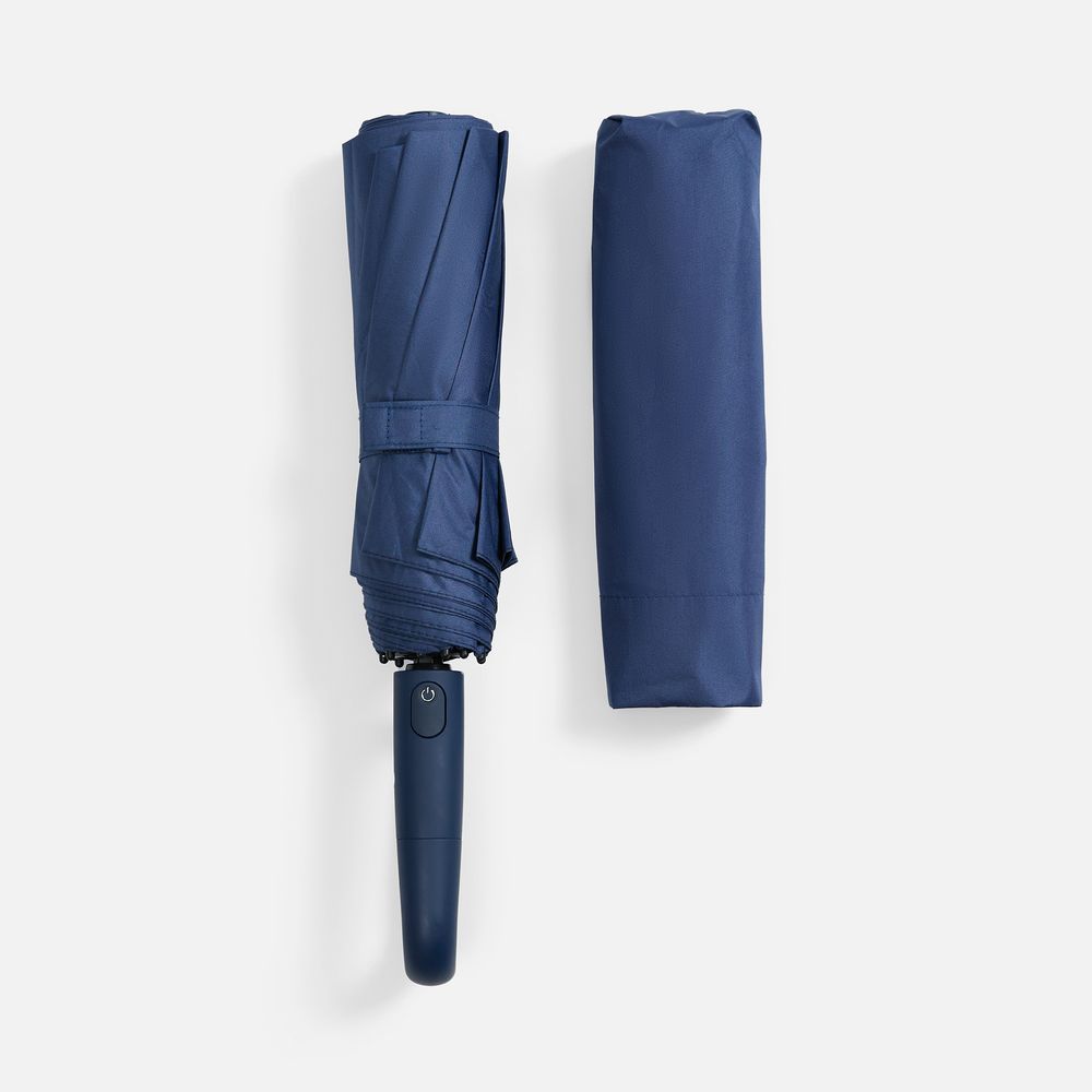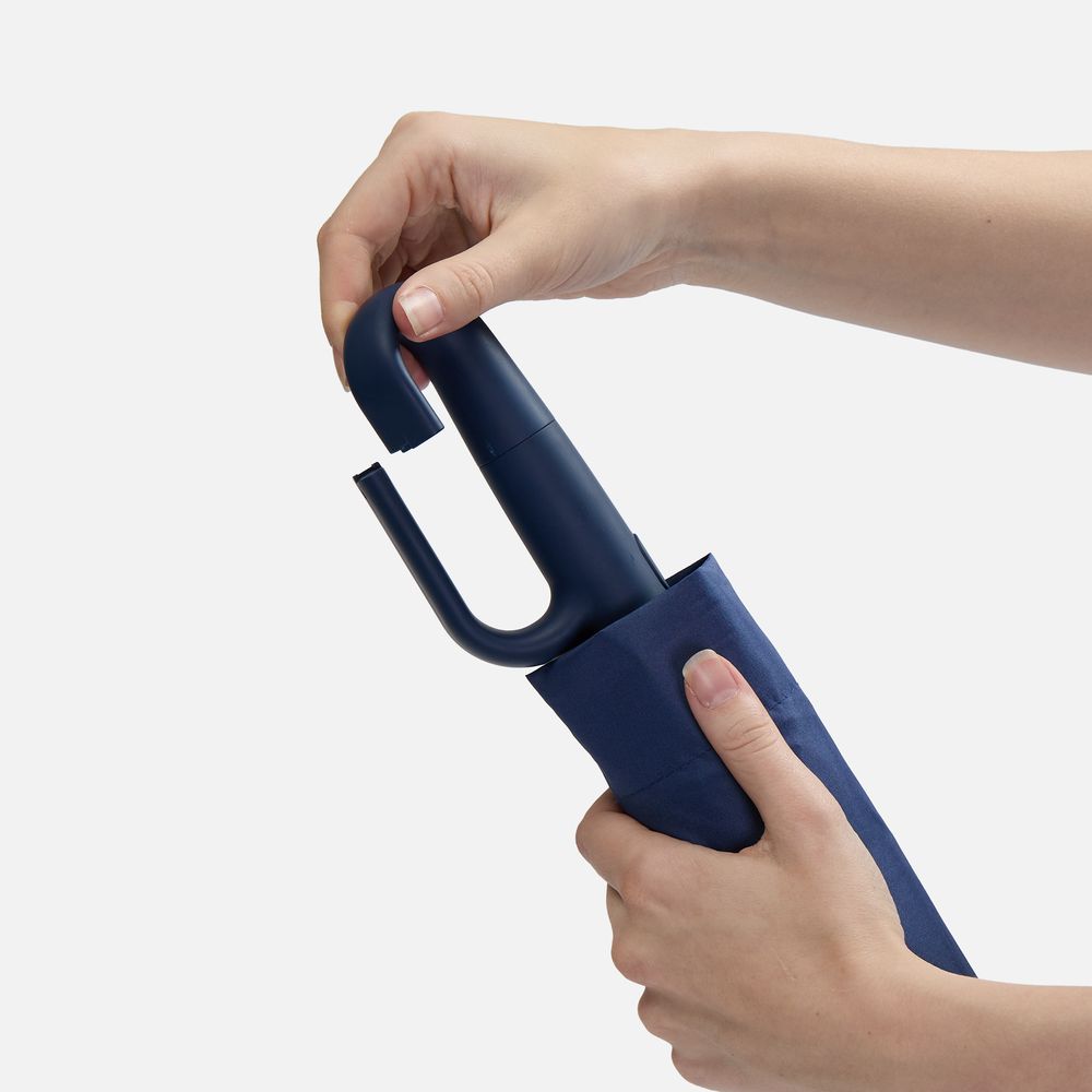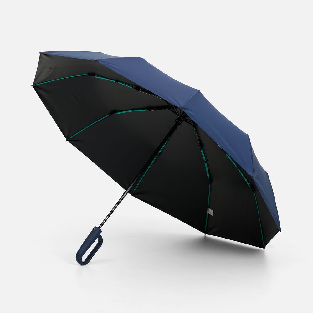 Зонт складной Skymate с УФ-защитой и ручкой-карабином, темно-синий купить оптом и в розницу с нанесением логотипа в Москве