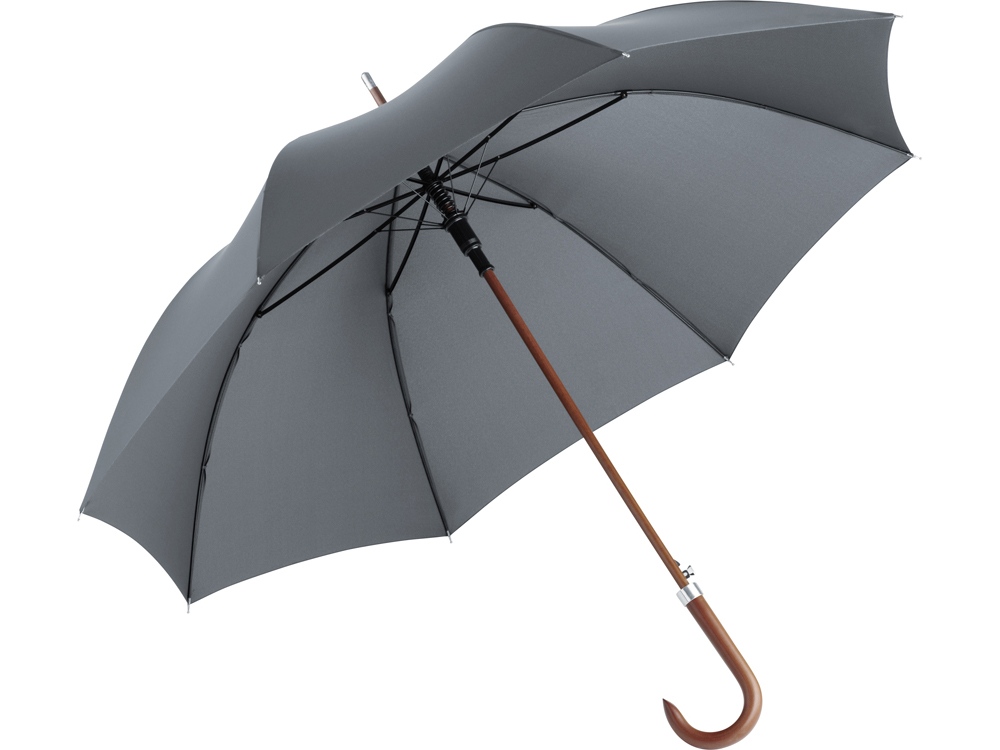 Этот элегантный зонт-трость с большим куполом и изящной деревянной ручкой будет отличным подарком к любому празднику! Тефлоновое покрытие купола защищает его от пятен и промокания.