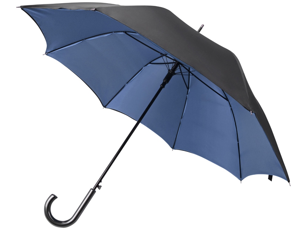 Интересный двухцветный зонт-трость спасет вас от дождя и легкого снега. Внешняя поверхность купола окрашена в черный цвет, а внутренняя имеет яркий, насыщенный оттенок, что непременно привлечет внимание. На купол зонта можно нанести логотип.